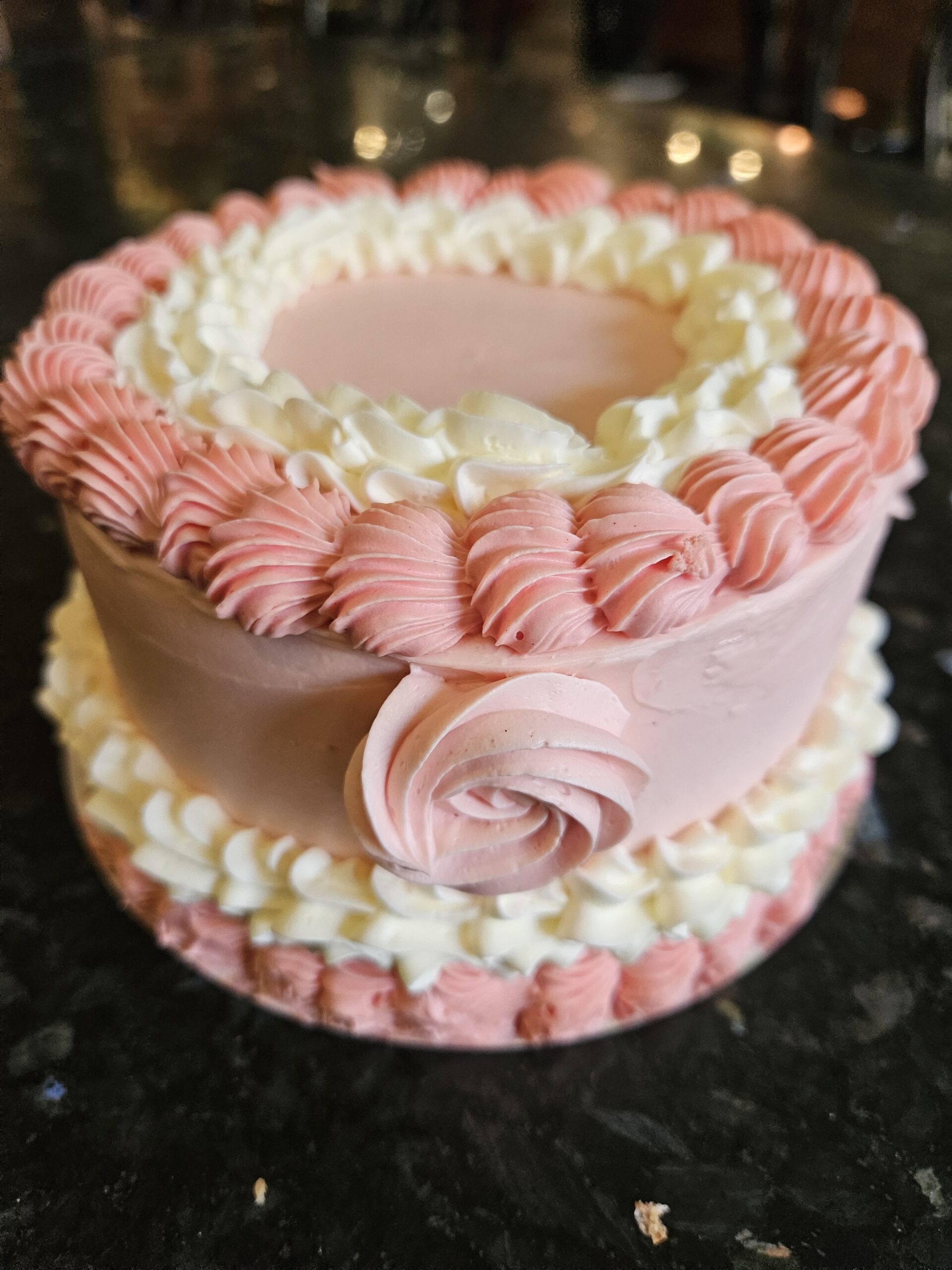 Wilgotne biszkopty red velvet pieczone z dodatkiem maślanki i kakao. W środku krem z serka mascarpone przełożony prażonymi malinami. Torcik na 4-6 porcje